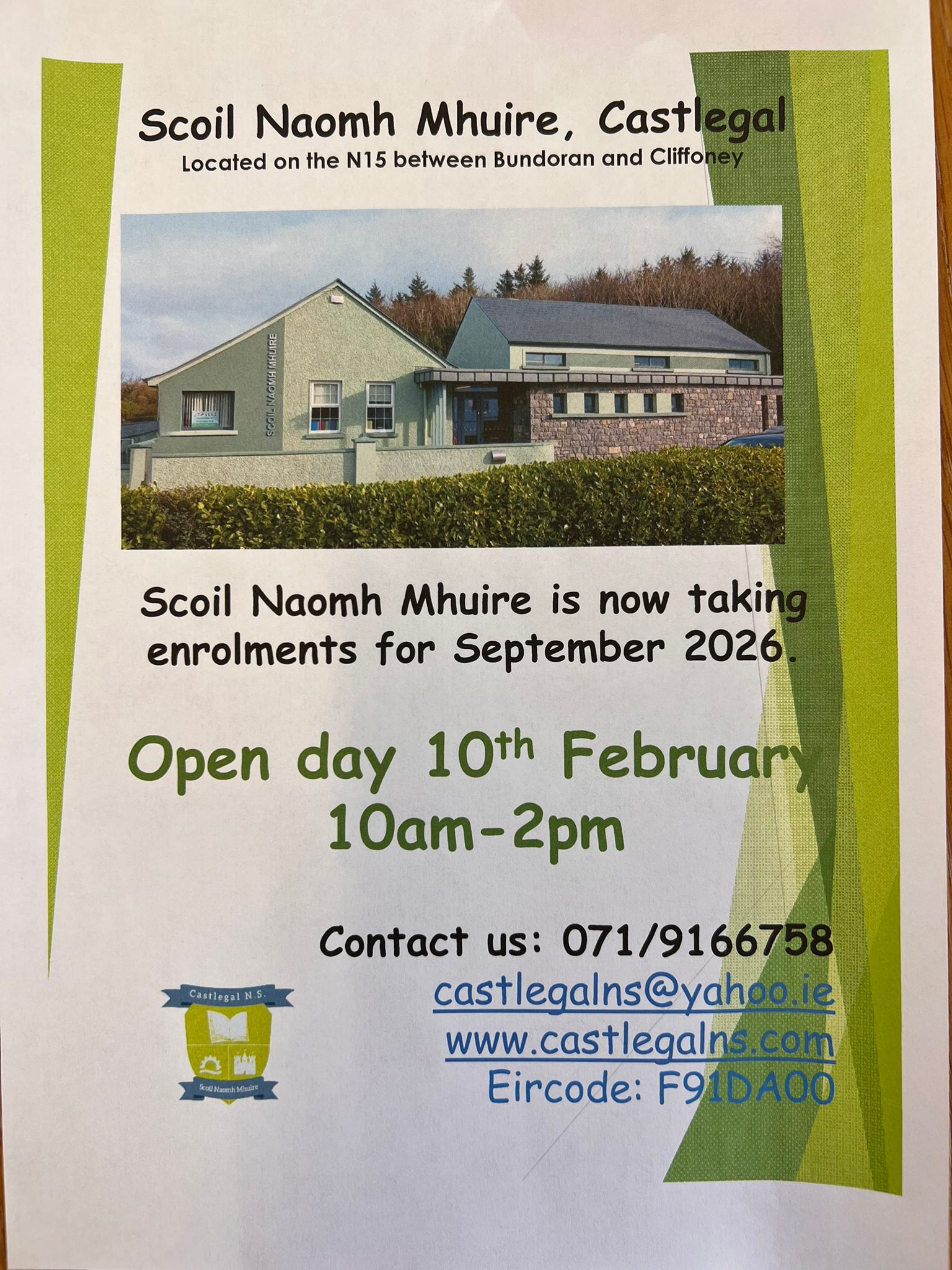 Open Day today! All welcome. Enrolment day for September 2026.