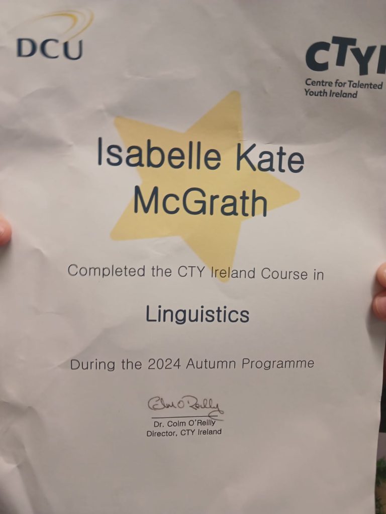 Kate completed the CTY Ireland Course in Linguistics! We are very proud of her ๐Ÿ‘๐Ÿผ๐Ÿ‘๐Ÿผ๐Ÿ‘๐Ÿผ